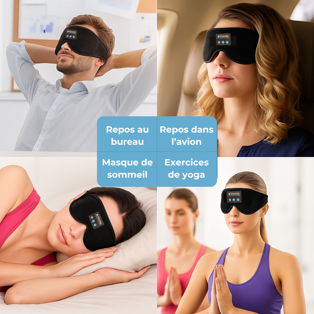 Endormez-vous plus vite et restez dans votre bulle : coques 3D “blackout” qui ne touchent pas les paupières + haut-parleurs ultra-plats pour écouter une playlist relaxante