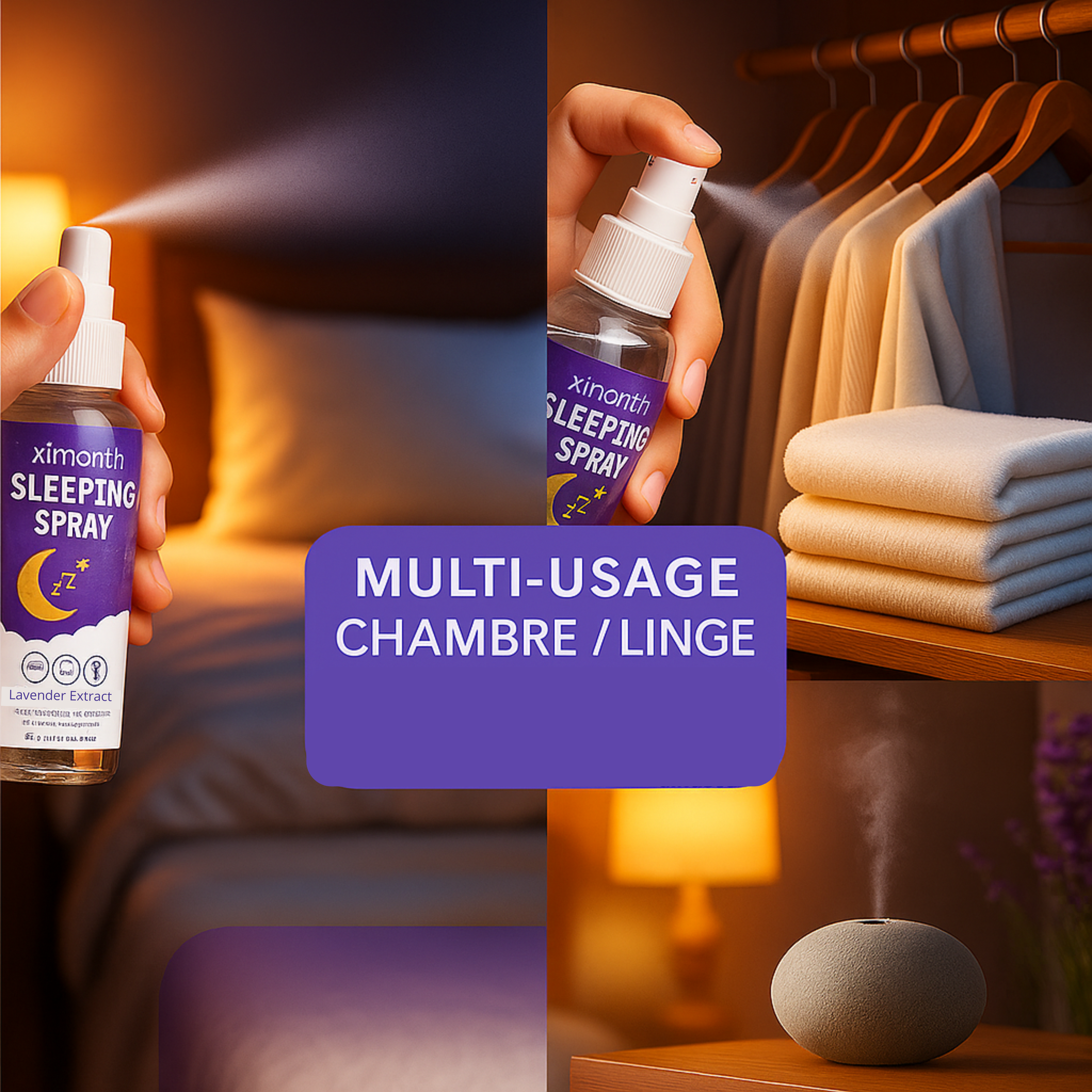 Facile : 1–2 pulvérisations dans l’air, sur le linge ou l’oreiller.